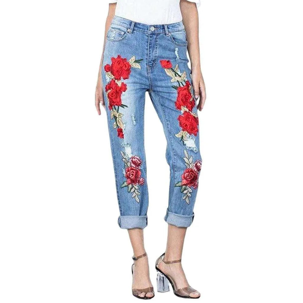 Casual stonewashed denim pants for women