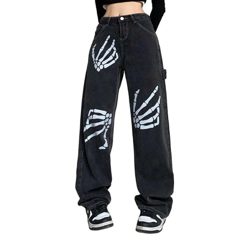 Elevate your style game with these printed carpenter women's baggy jeans from the 2023 Autumn Collection the perfect blend of y2k, street, and high fashion.